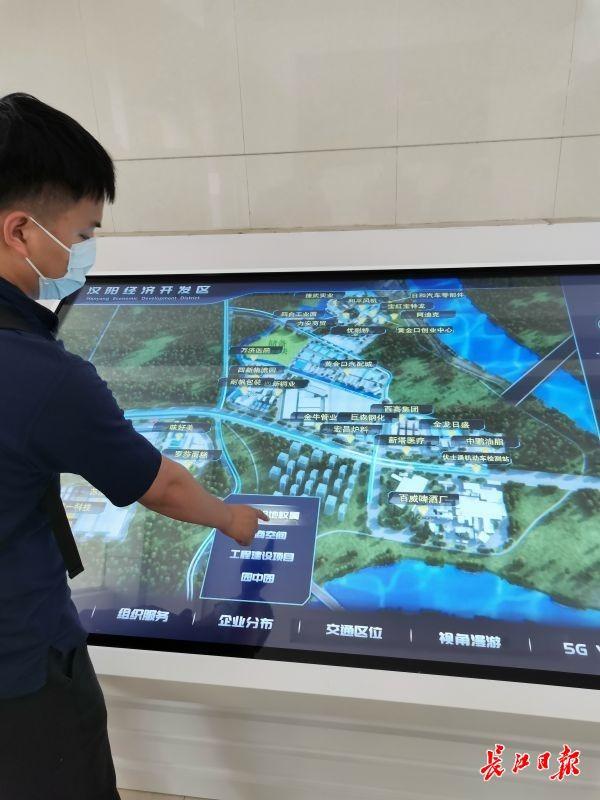 560家企业、81家“四上”企业、年税收过千万的企业15家……18日,汉阳经济开发区管委会大楼内的一款新型电子沙盘投入试运行,依托5G技术支撑,结合大数据和VR技术,人机交互功能更为先进,园区所有企业及相关重要信息均“一键可得”。